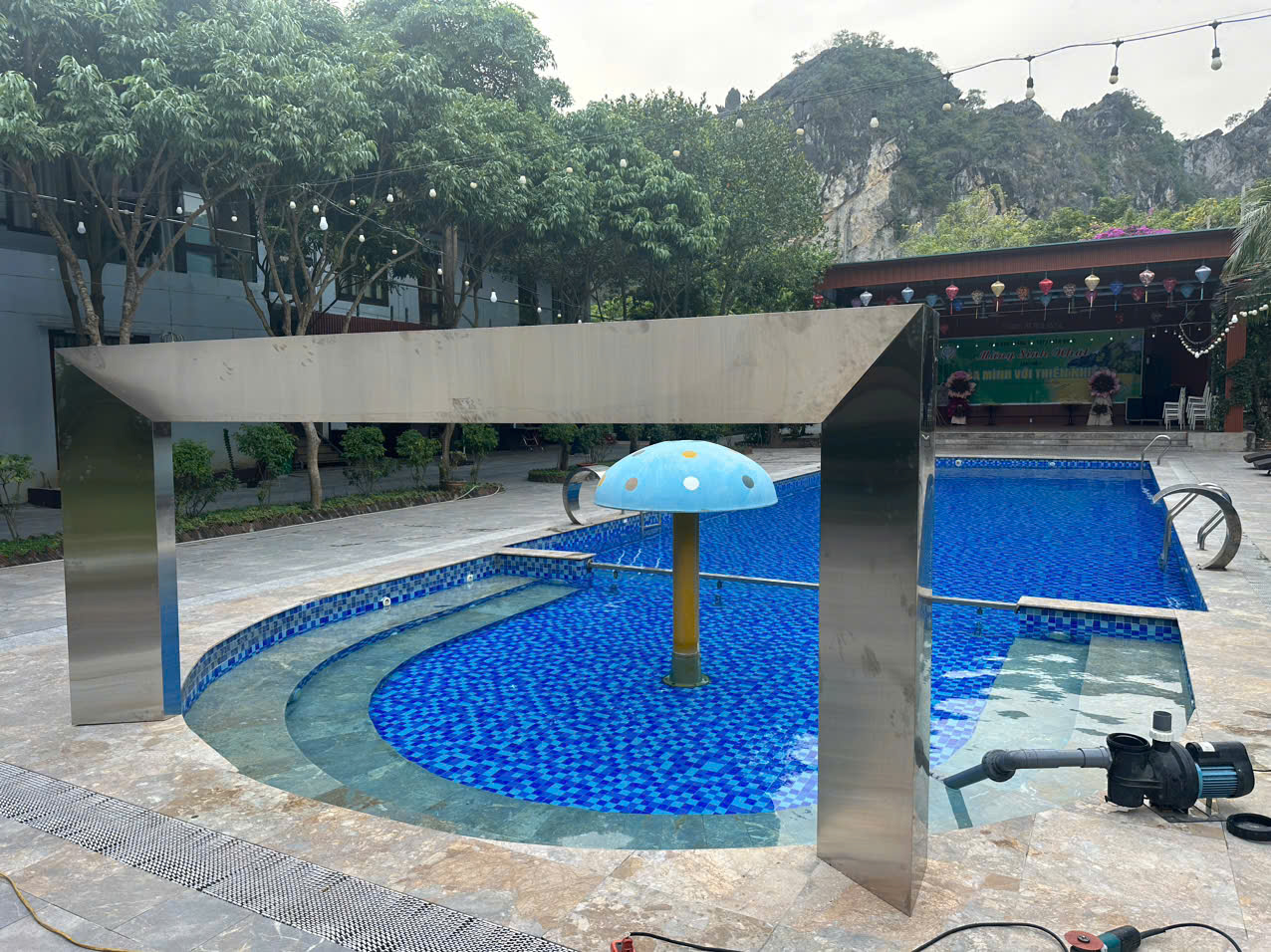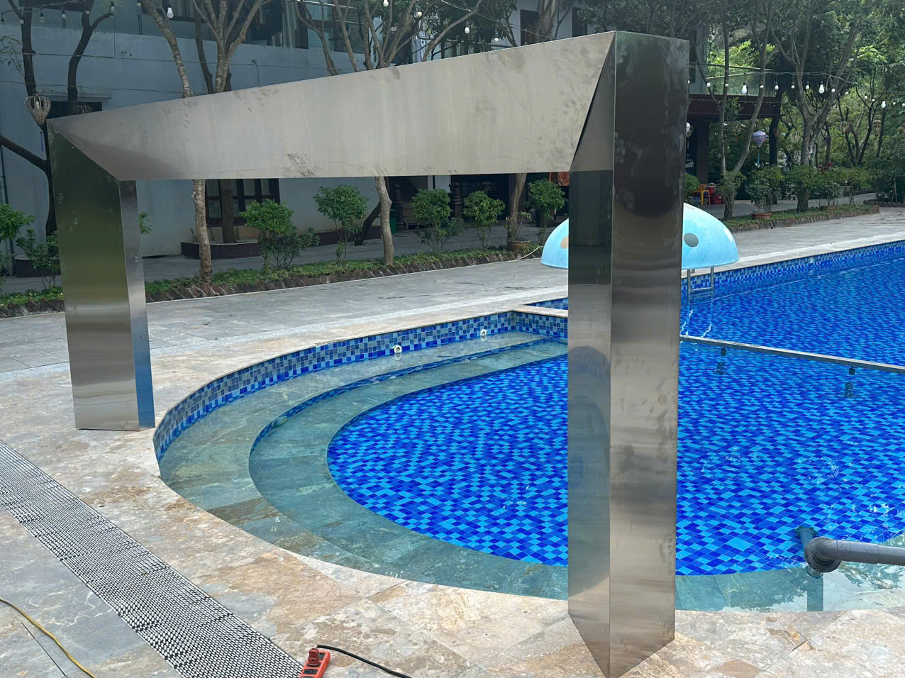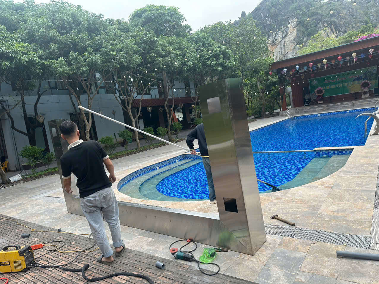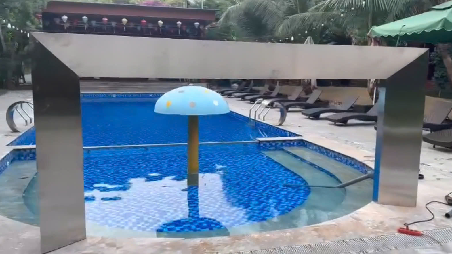 ✨ Thác nước giọt ranh inox 304 cao cấp – giải pháp hoàn hảo giúp biến hồ bơi thành điểm nhấn sang trọng cho villa, resort, khách sạn: